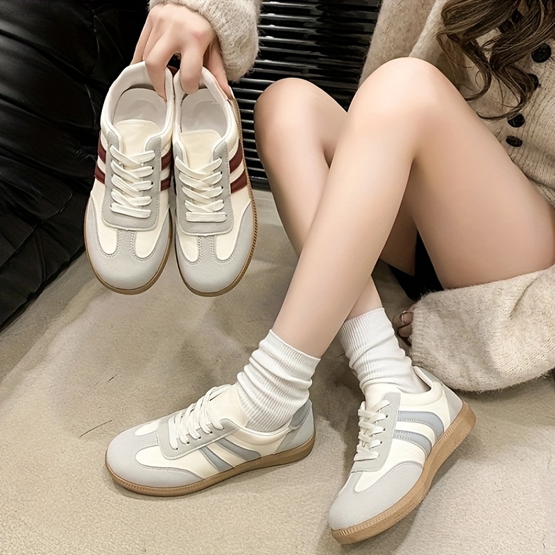 Tênis casuais femininos novos 2025 - Cano baixo com cadarço, cobertura sintética