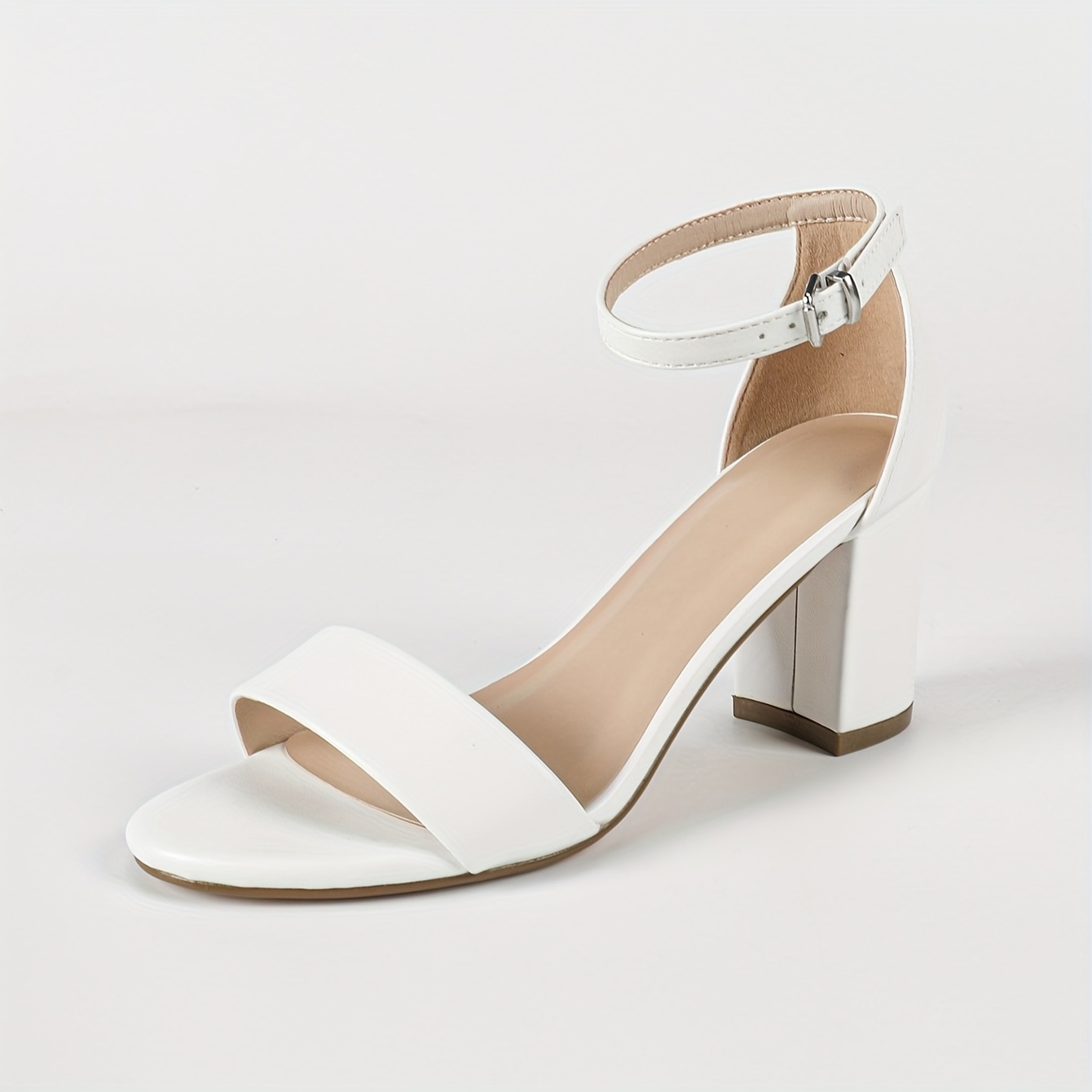 Sandálias femininas elegantes com salto branco e tira ajustável no tornozelo - C