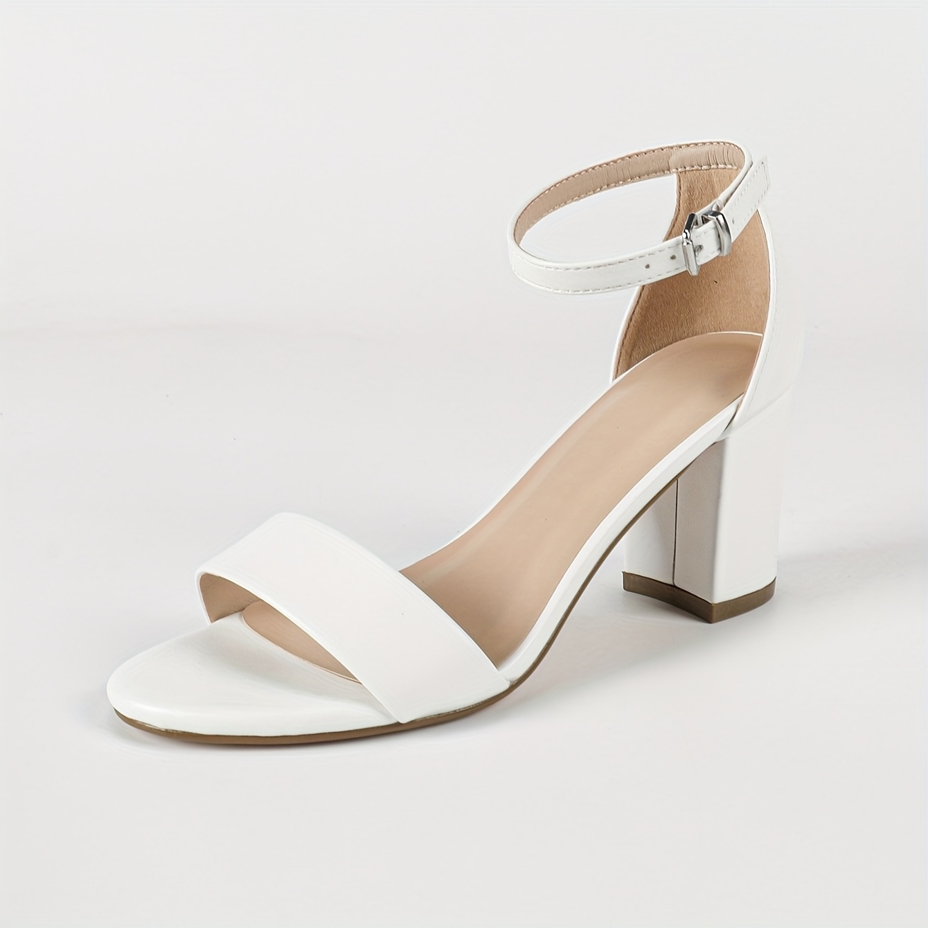 Sandálias femininas com salto grosso e cor sólida - tira ajustável no tornozelo