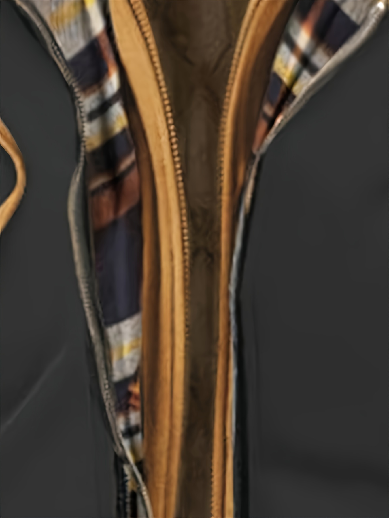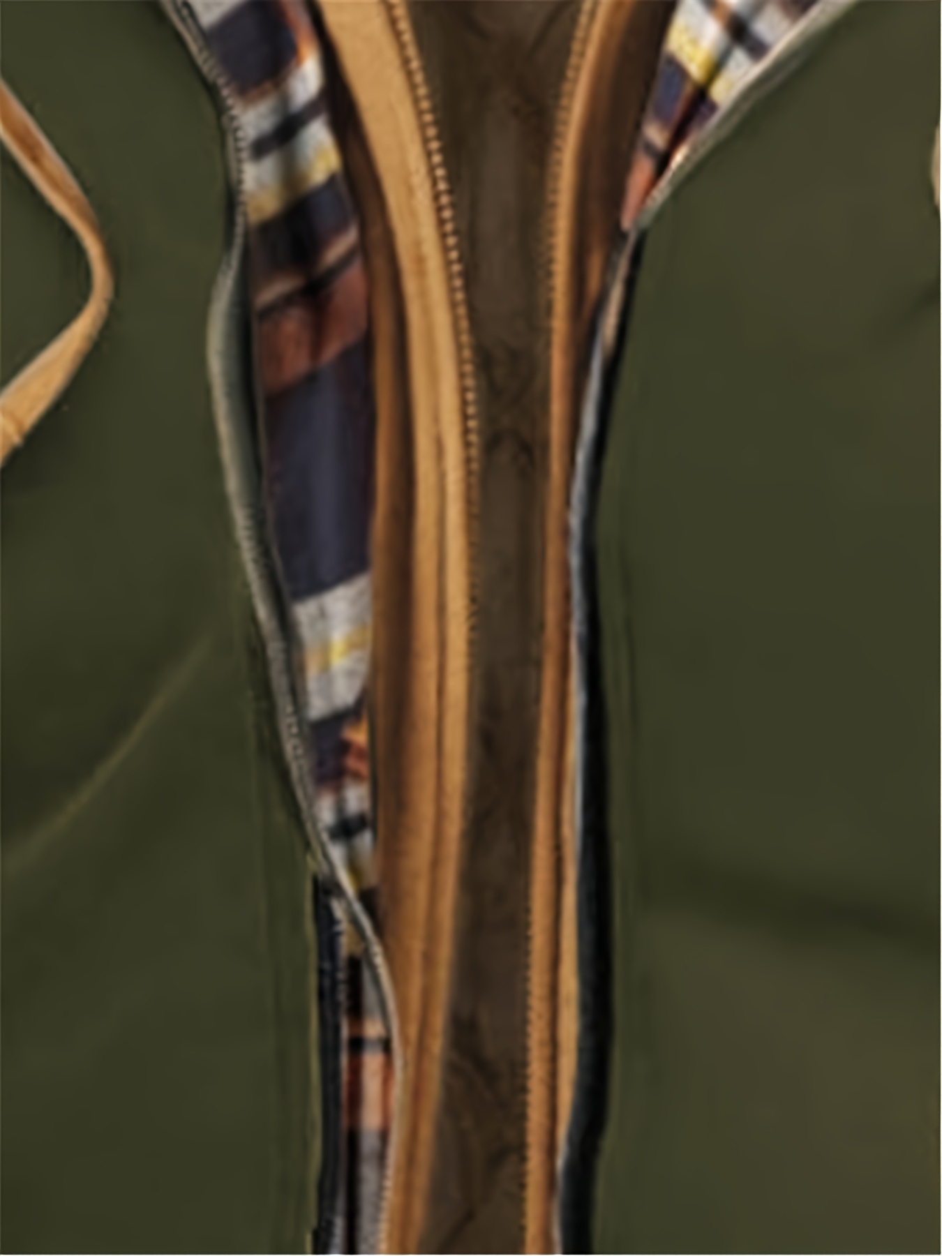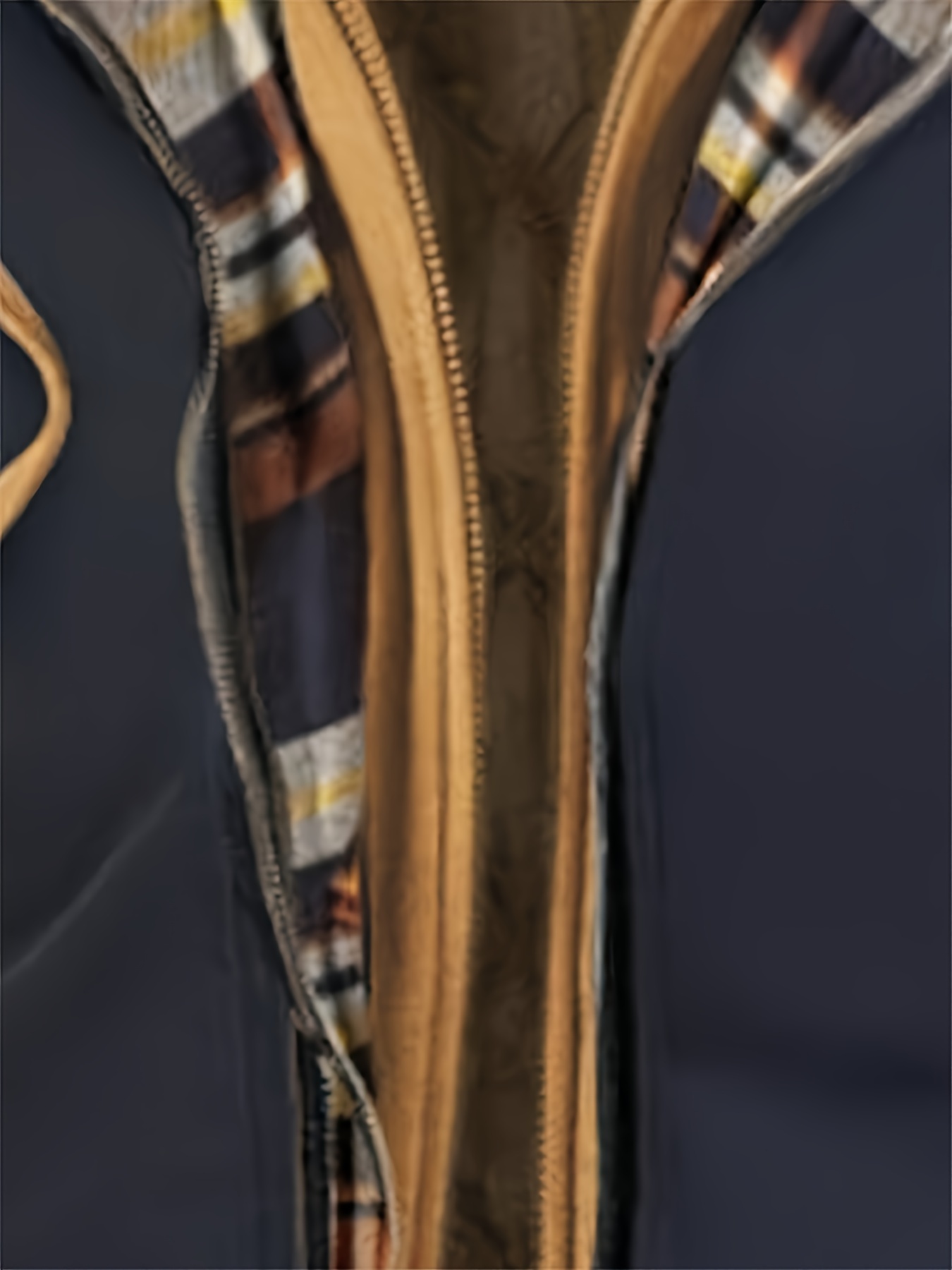 Sports warm Plush Men's jacket with cap, Men's zipper regular pocket checked jac