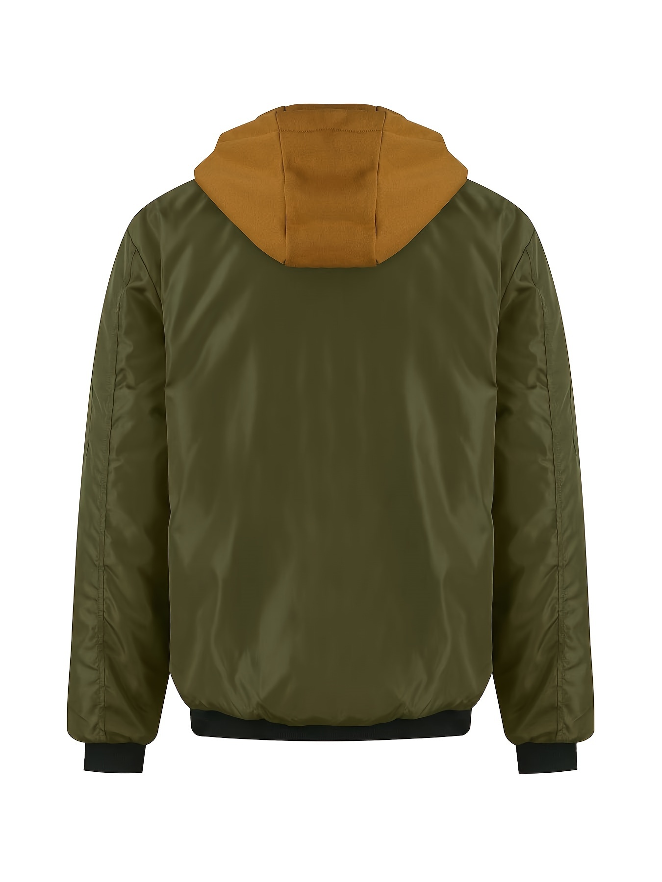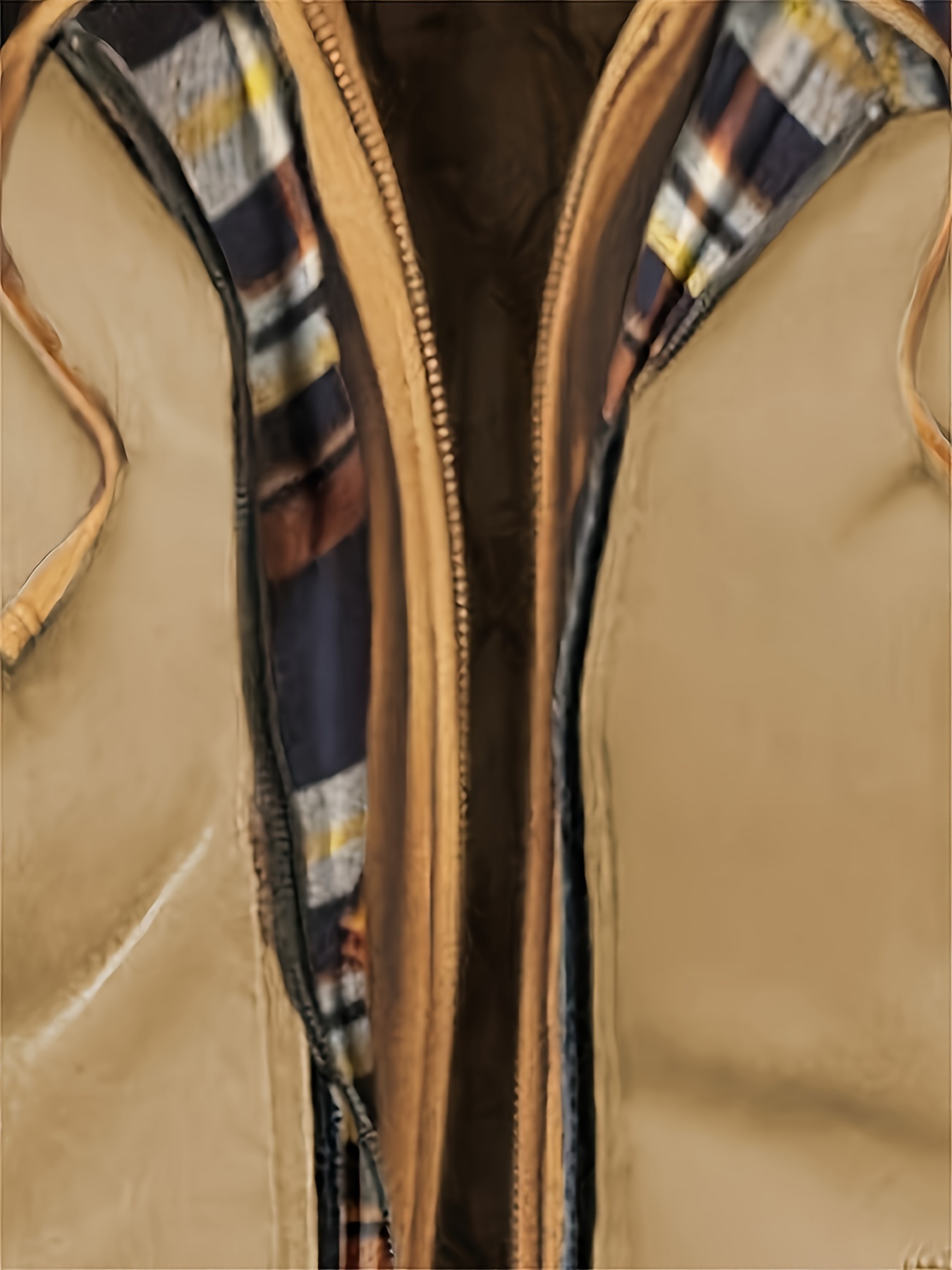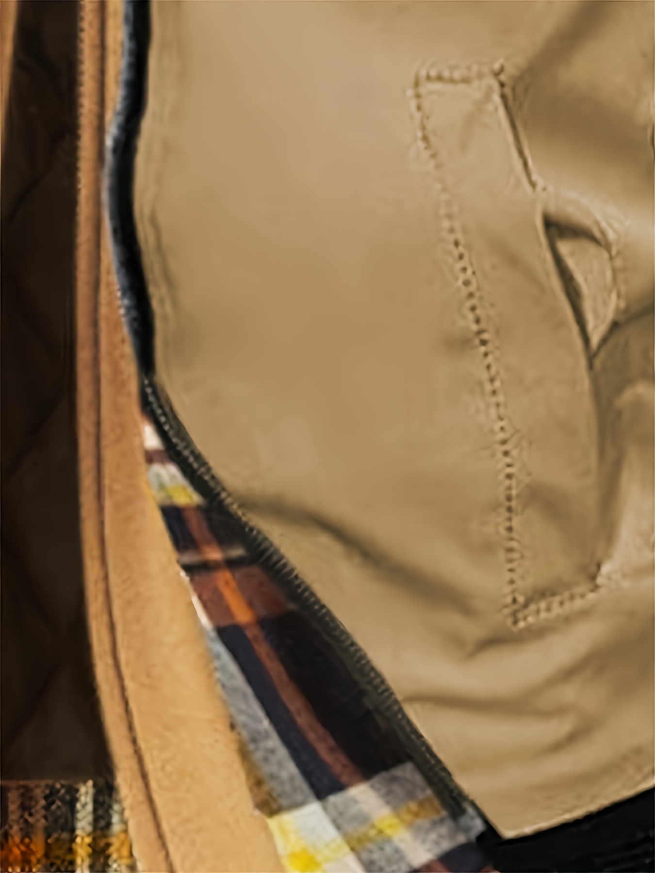 Sports warm Plush Men's jacket with cap, Men's zipper regular pocket checked jac