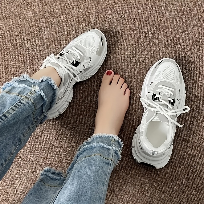Tênis feminino com plataforma em malha respirável - Sapatos baixos com cadarço p