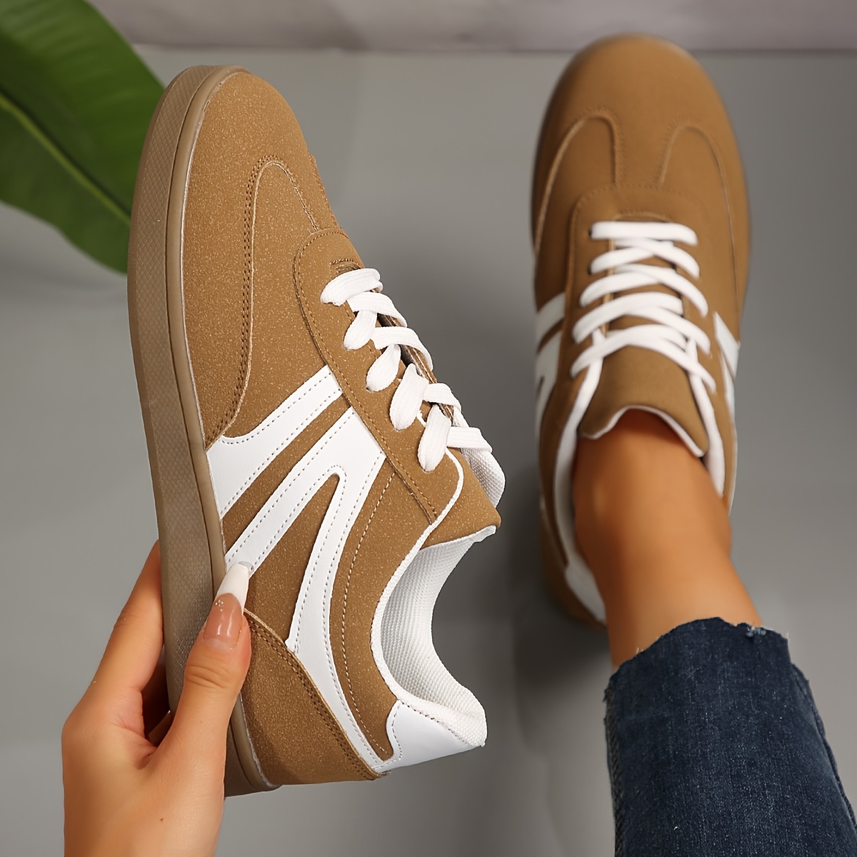 Tênis clássico feminino de cano baixo com cadarço, sola de borracha e palmilha d
