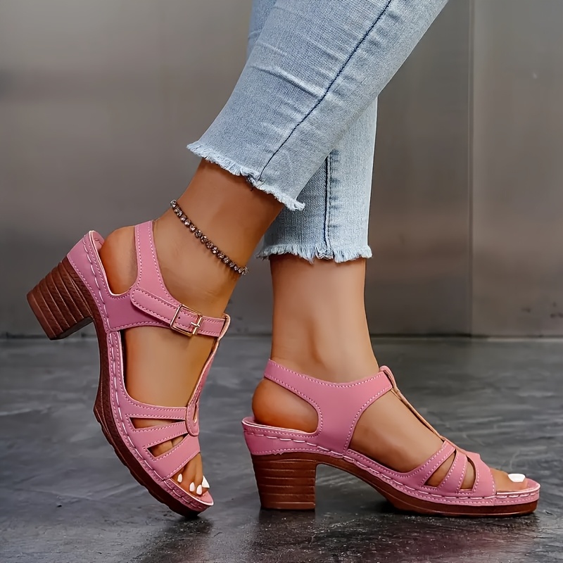Sandálias femininas elegantes estilo romano - Sandálias de salto alto abertas na