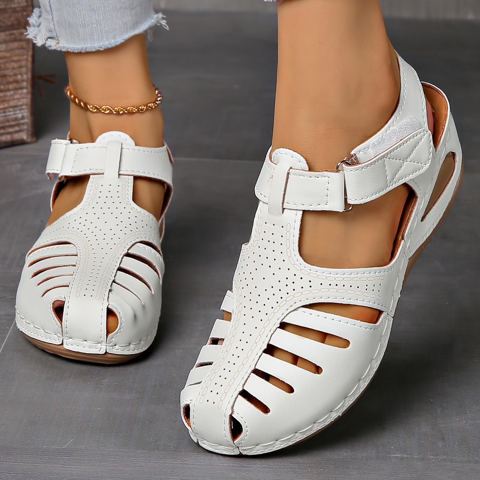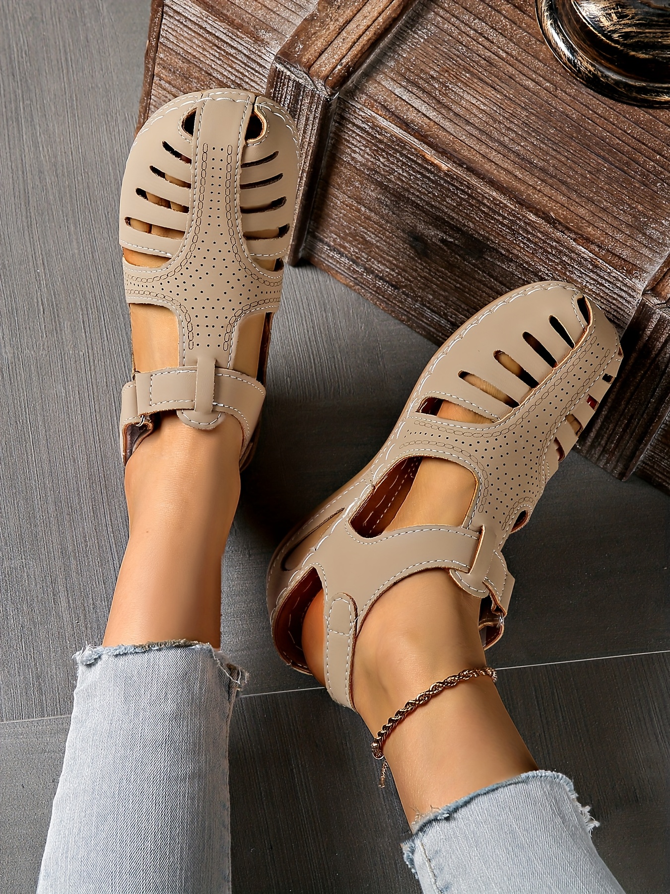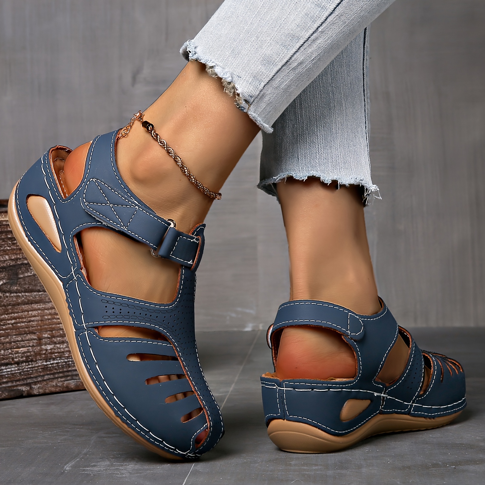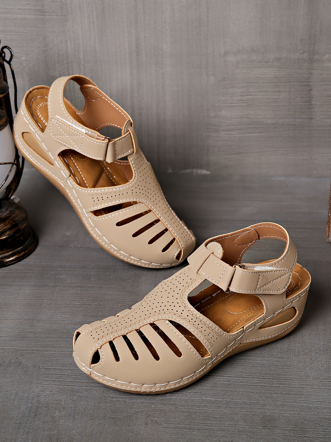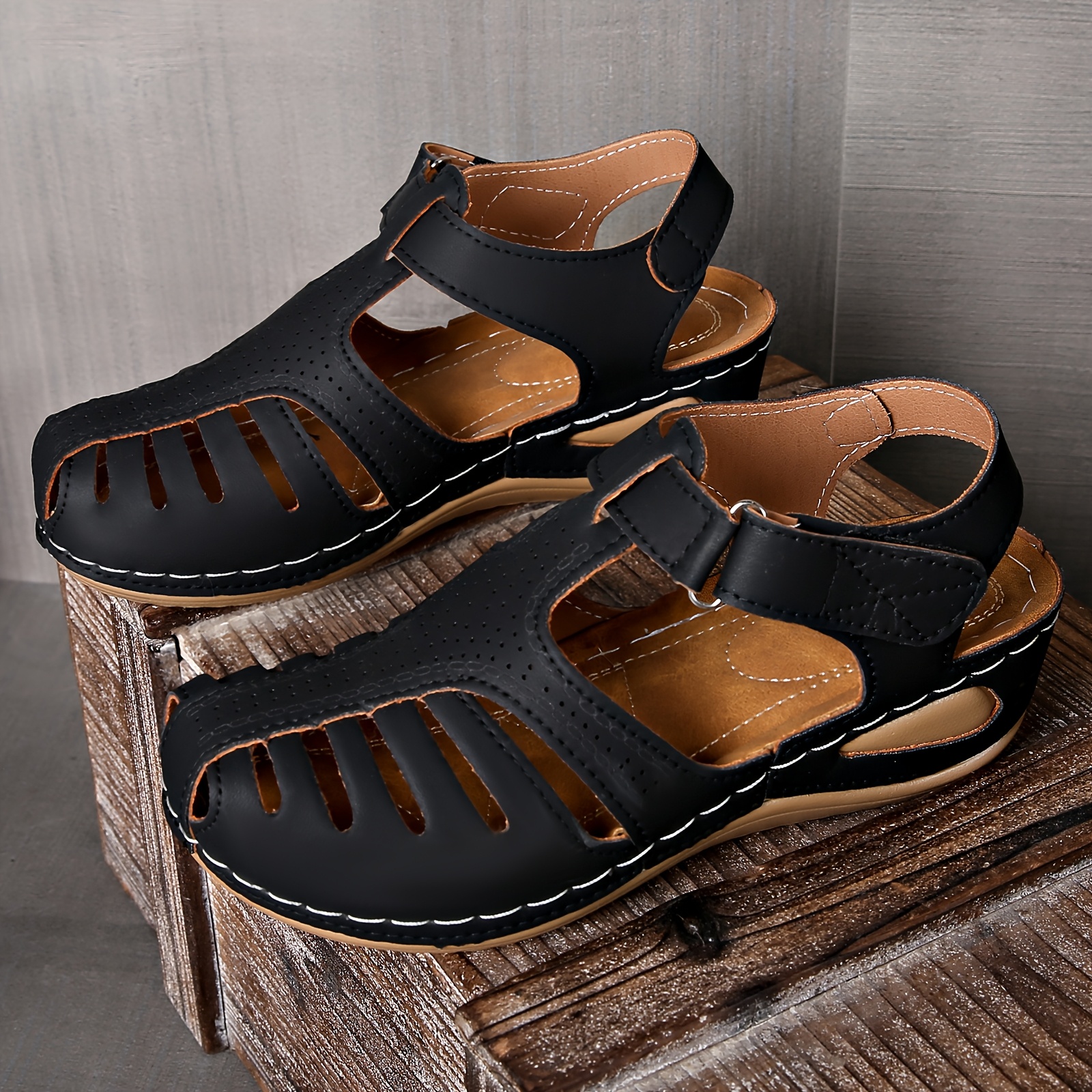 Sandálias femininas com salto em cunha na moda - Biqueira redonda casual, sintét