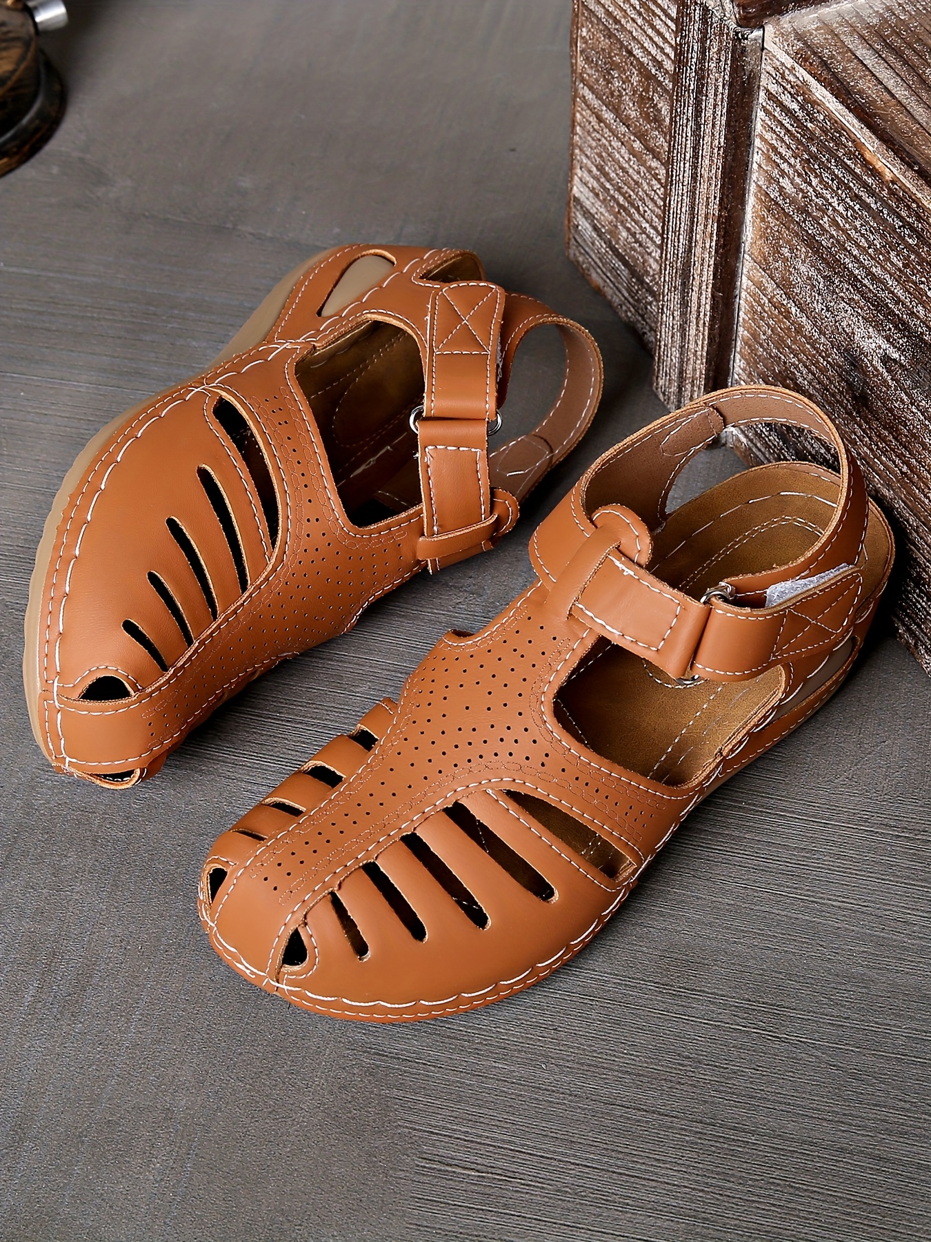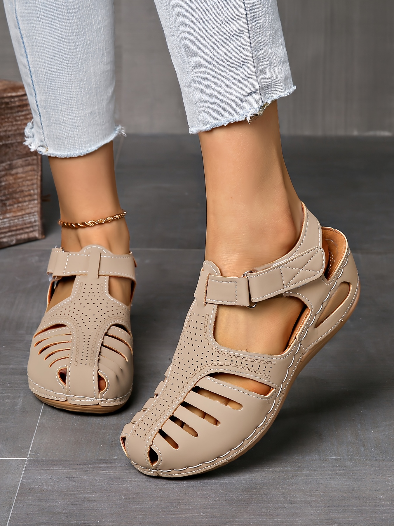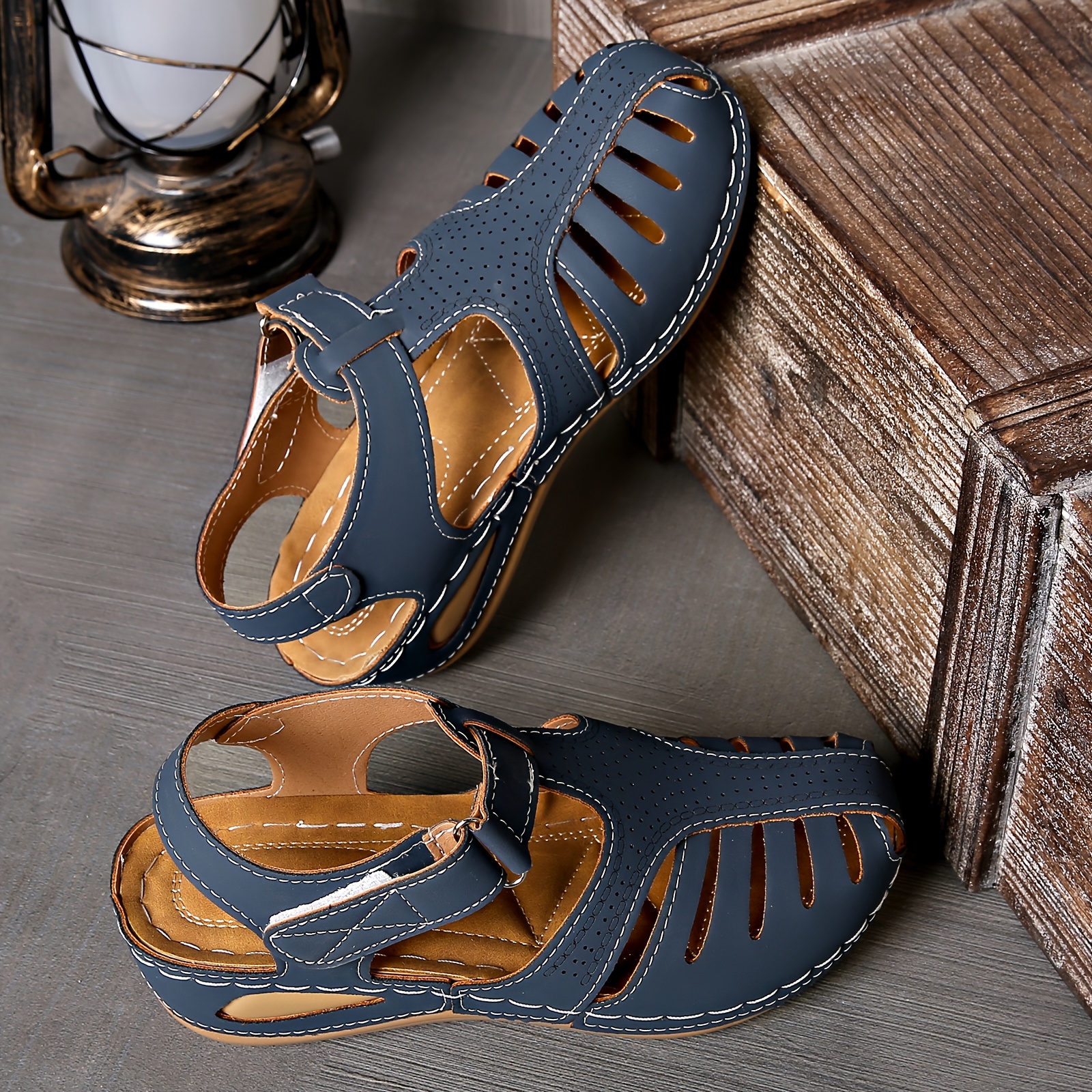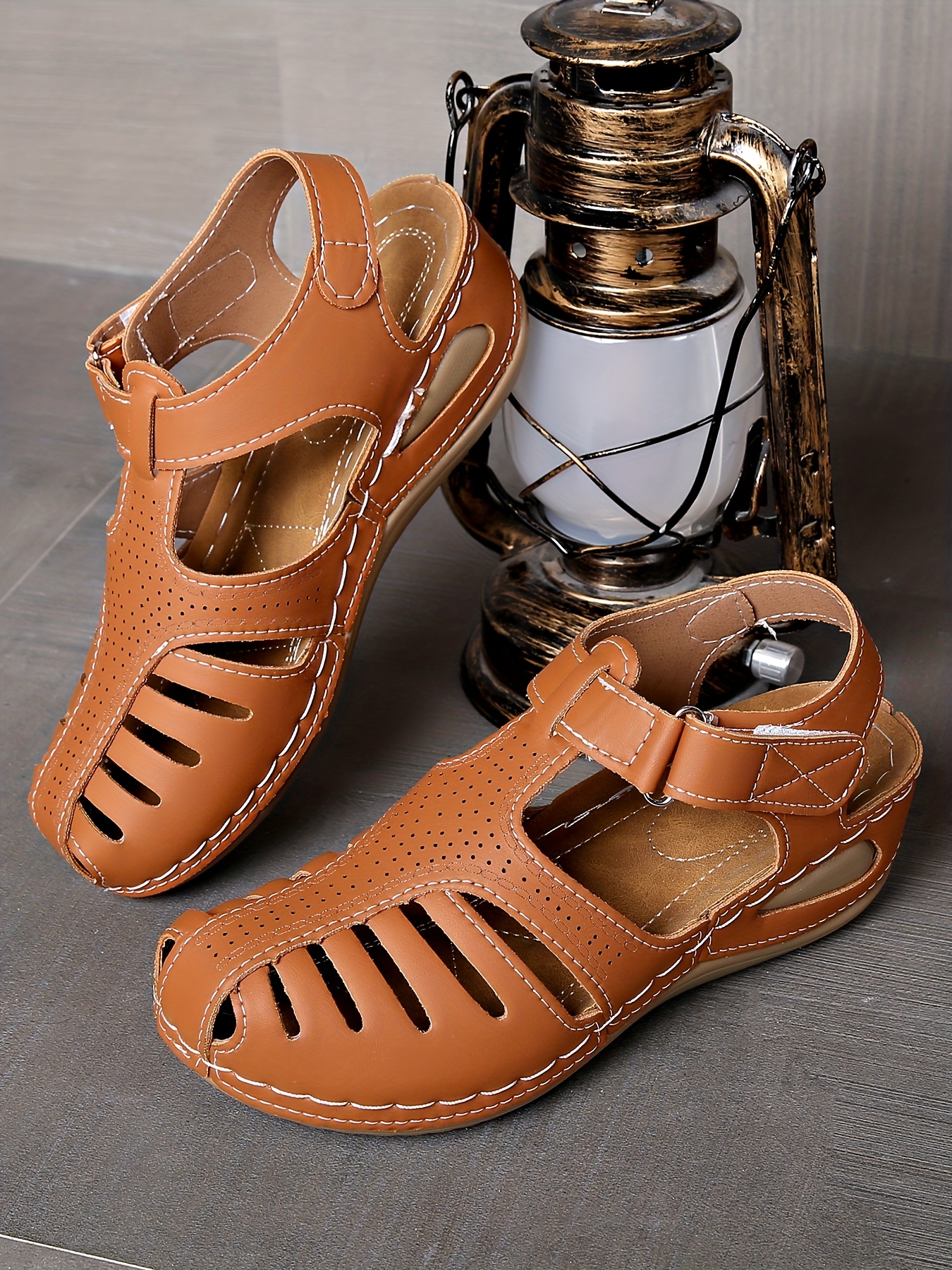 Sandálias femininas com salto em cunha na moda - Biqueira redonda casual, sintét