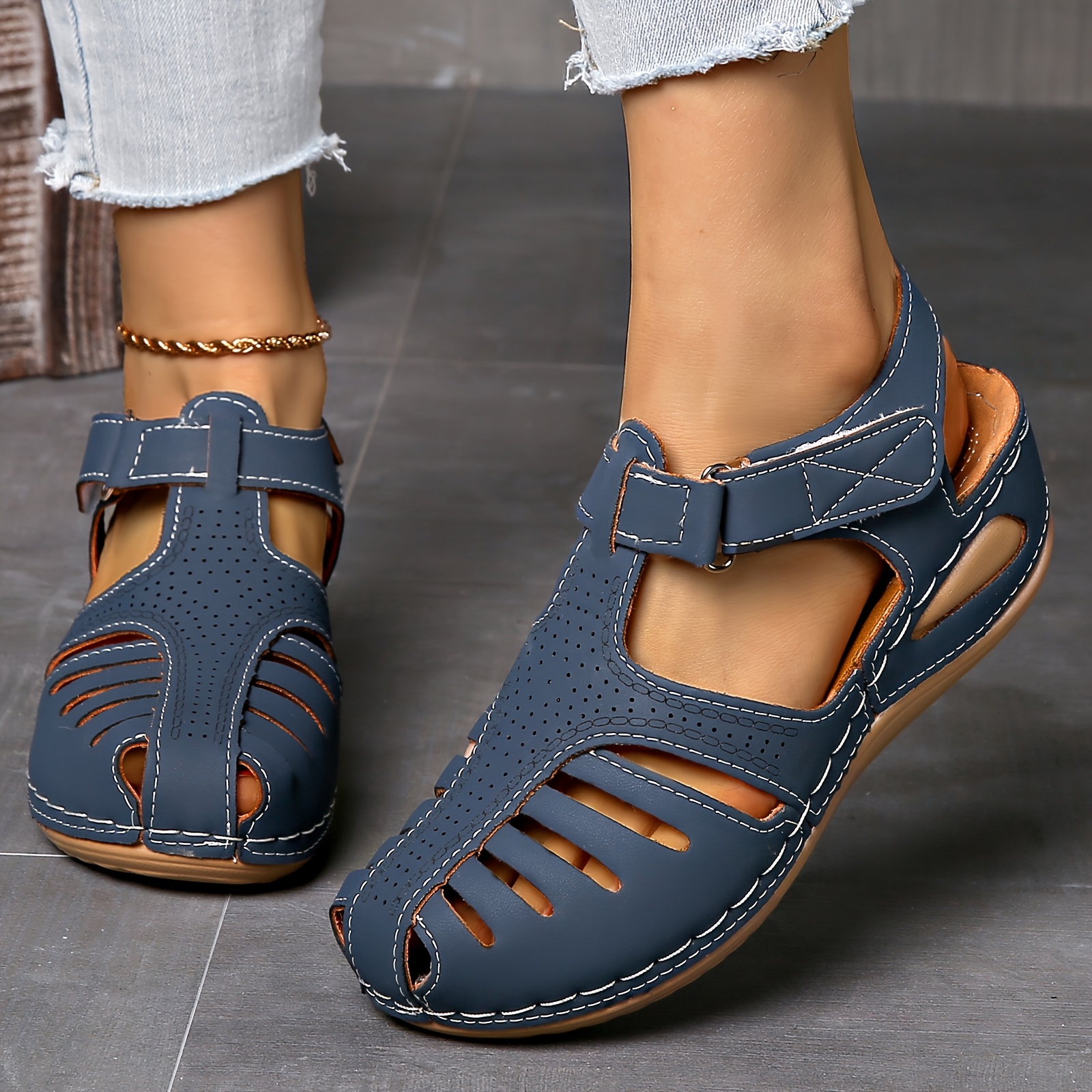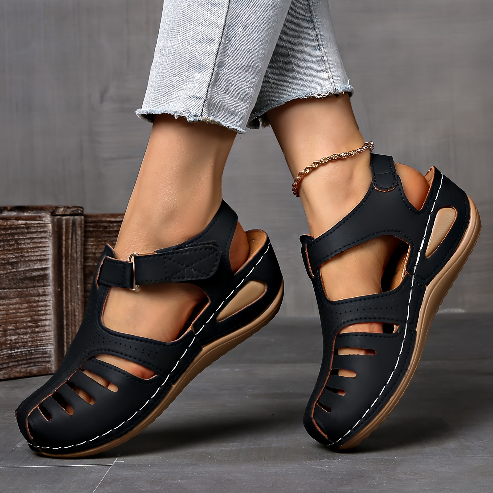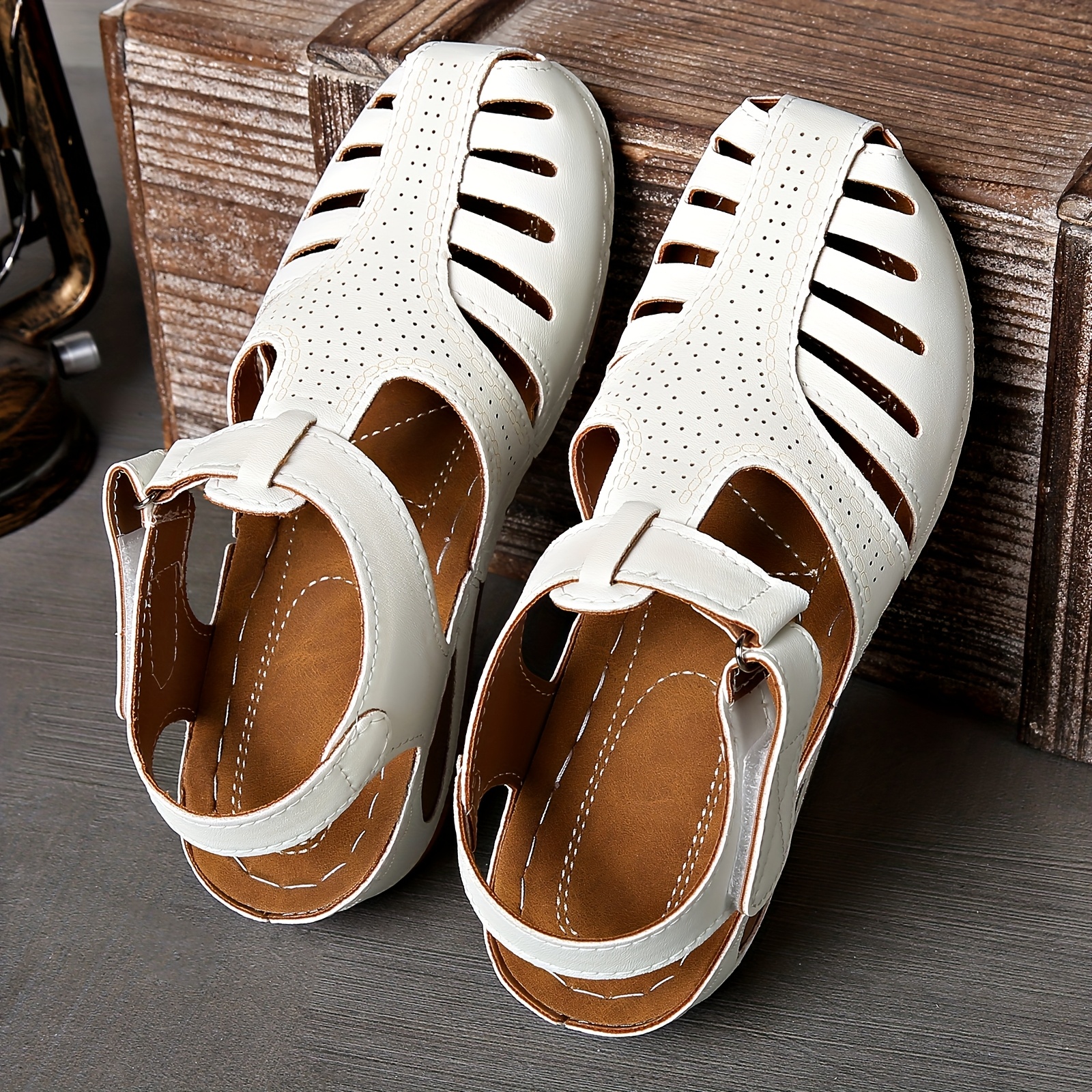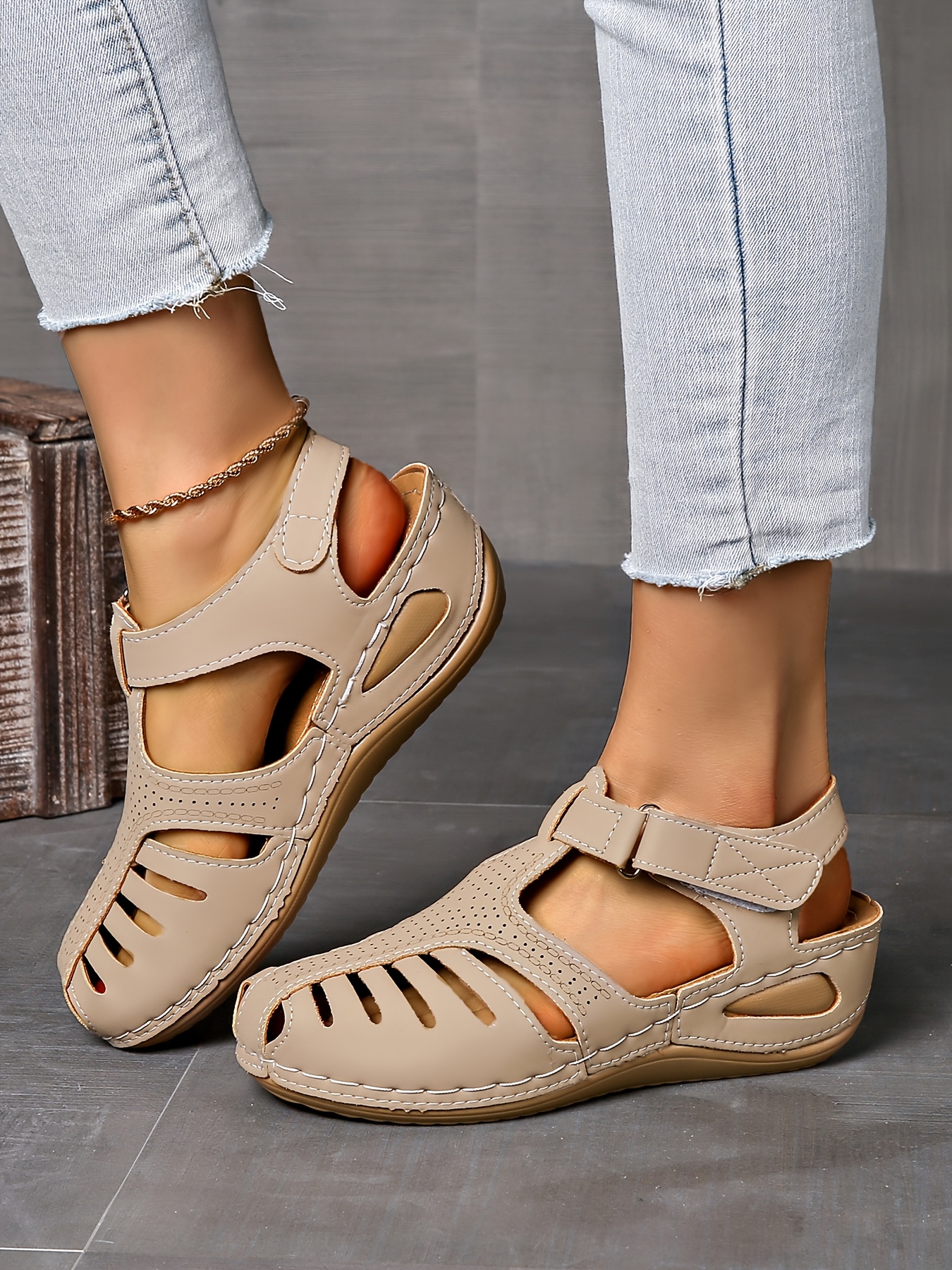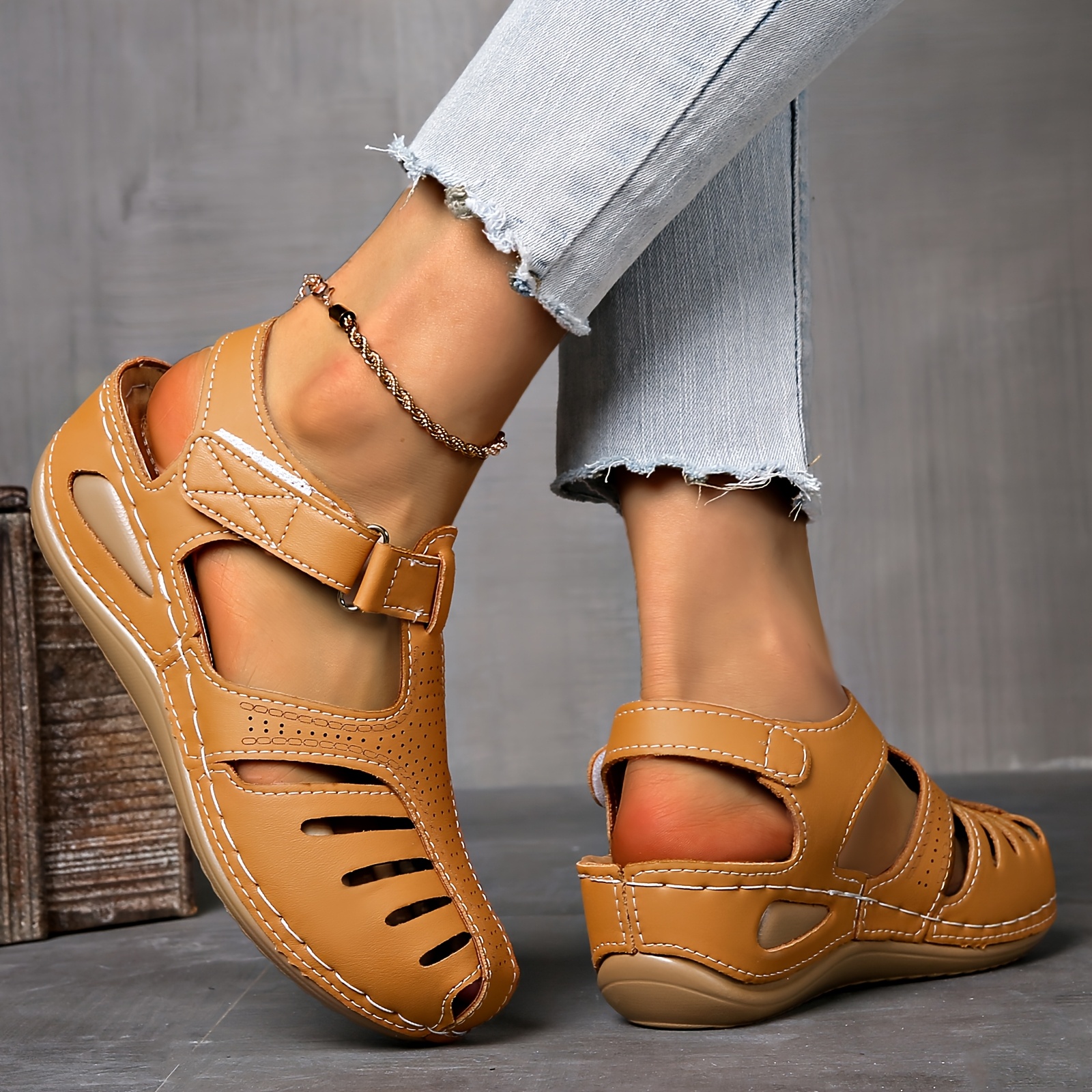 Sandálias femininas com salto em cunha na moda - Biqueira redonda casual, sintét