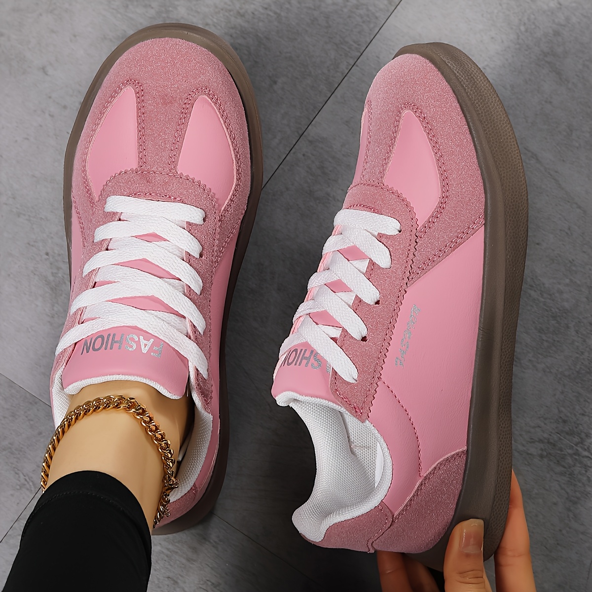 Tênis feminino elegante rosa e branco de cano baixo - Parte superior em microfib